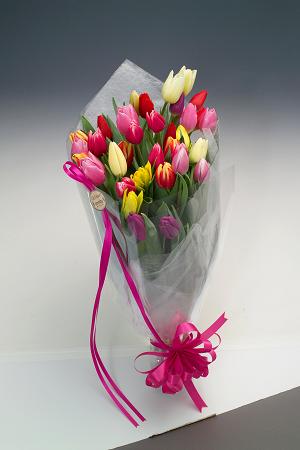 ①となみ チューリップ切り花 25本(カラーMIX) 贈答ラッピングあり・箱付配達