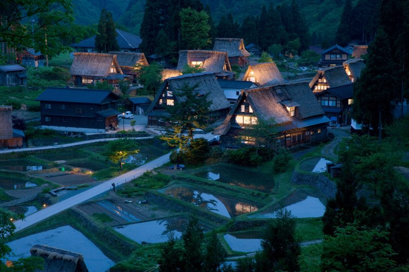 18:30 越中五箇山「相倉合掌集落」ライトアップまたは窓灯り(90分)