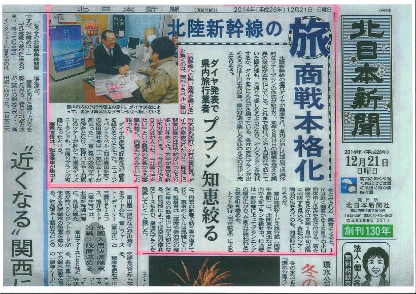 富山新聞 2014年12月20日 北陸新幹線ダイヤ発表