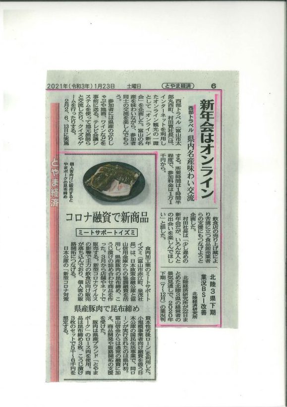 北日本新聞2021年1月23日「ブリしゃぶ新年会オンライン」