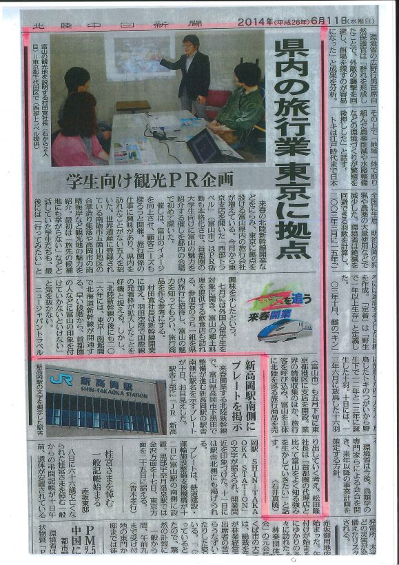 北陸中日本新聞 2014年6月11日 東京支店活動