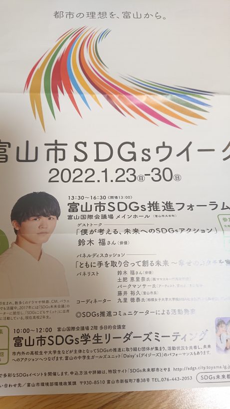 1/29(土)は、富山国際会議場にて、鈴木福くんを招いての、富山市SDGsフォーラムに参加。