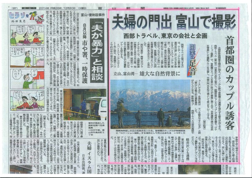 富山新聞 2014年12月30日 富山でロケーション撮影(フォトウェディング)