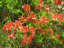 ◆8万本ものレンゲツツジは、春たけなわの緑の高原に一層のいろどりを添えます。