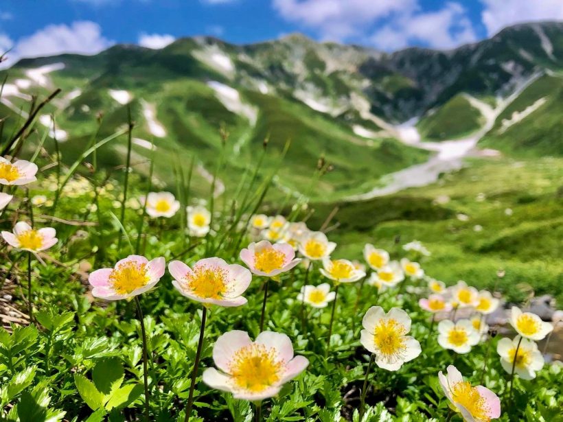 ・夏の立山・室堂(標高2450m)は平地よりも気温は10〜20度ぐらいで快適な避暑地です。北アルプス立山の爽やかな高原に咲く高山植物や風景などゆったりお楽しみください。※晴天時の日焼け止め・サングラスは必須。雨天時はカッパがあると便利です。