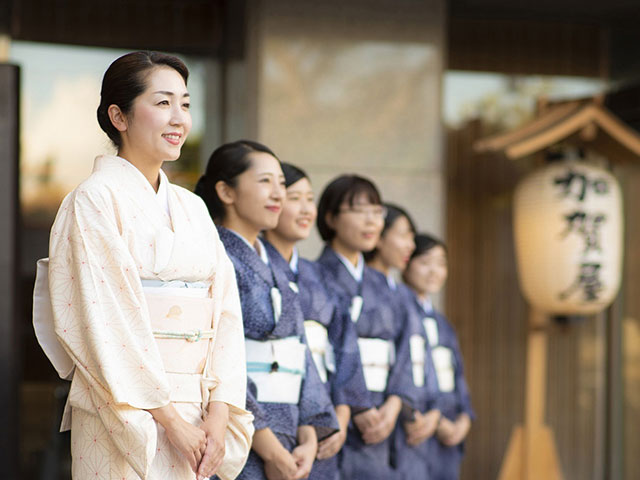 ・加賀屋玄関より若女将さんのお出迎え