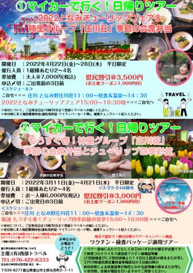 マイカーで行く!日帰りツアー①~⑥発売開始 2022/3/10~4/28