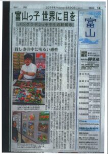 富山新聞 2014年8月20日 バングラディッシュ小中生の絵展示
