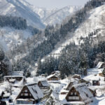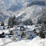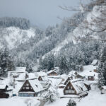 ①雪にすっぽり埋まる、世界遺産・五箇山合掌造り。冬にしか出会えない静けさと美しさに包まれる風景