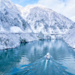 静かなモノトーンの世界の中で、遊覧船から眺める冬の富山の絶景スポット。船内は暖房がきいてますので暖かいです